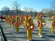 【明慧网2003年11月25日】在圣诞节来临的前一个月,是美国的节日季节。宾州州府海里斯堡每年都要在此期间举办节日庆祝游行。11月22日上午10点,在海里斯堡举办了宾州中部最大规模的节日游行。今年游行的主题是“美国--悠久的历史和节日传统”。法轮功学员应邀参加游行表演。