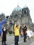 这是德国首都第二次迎来这么多法轮功修炼者,上一次是去年四月江泽民去德国期间。来自俄罗斯的谢晓慕说,「大伙都知道,江泽民是迫害法轮功的元凶,既然他去年到德国来,我们一定要过来抗议这件事。今年正式提交起诉江泽民,这对全球来讲都是一件大事,当然我们要过来声援这件事。另外一个原因是正好是全欧洲的法轮大法法会,就这两个目的,所以很多俄罗斯学员就来了,有的坐了两天两夜车,很辛苦的。」