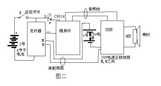 二)自动翻面随身听,价格20元左右。打开随身听的后盖将4颗导线(两颗信号线,两颗电源线)接出,在电源线的正极接C9014的发射极或者集电极,在C9014基极接一颗红导线,电源负极用黑导线,音频线的地线用白导线,信号线用黄的。还可在电源两线之间加接一个1000uF/6.5v的电容器,降低噪音。注意,有些随身听的音频线的地线与电源正极相通,此时随身听的自带扬声器或耳机有电流通过,供其末级功放供电,如果取掉随身听的扬声器,则必须在音频线的两线之间接一个相当于扬声器的电阻(8欧),否则,末级功放无电,则无信号输出。