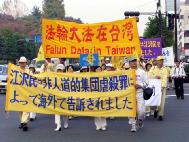 晚上在东京塔下举行了纪念被迫害致死的大陆同修的烛光追悼会。来自各国的学员代表作了简短发言,表达了对同修的怀念,表示为把江氏集团送上良心和道义的审判台将继续广泛而深入的讲清真象。