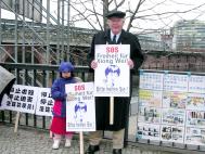 尽管这天大使馆前很冷,大法弟子们显得非常和祥,我们每半小时发一次正念。