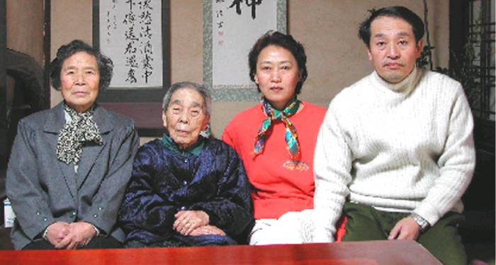 | 容子11月27日回到日本时,在机场受到了丈夫和日本弟子的欢迎,并接受大量媒体的采访 | 返回日本的金子容子与她的日本家人在新泻县佐渡岛的家中(左起为丈夫的母亲、90岁的老奶奶、容子本人、容子丈夫) | |