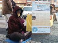 这天尽管天气寒冷,我们还是给许多行人发了资料。这次的活动是在一个特别宽敞的场地上举行的,旁边是一个在前一天刚刚开市的圣诞市场,环境很好。在市政厅的努力下,我们得到了这块有利的场地,他们祝我们的活动成功。与我们相邻的是小吃摊,很多游客经过此地,有的在我们展位前转了好几次,这也给了我们更多的向他们讲真相的机会。