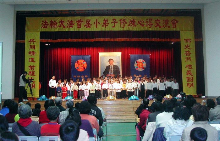 【明慧网2003年12月29日】首届海外法轮大法小弟子修炼心得交流会于12月27日在台北市石牌国中礼堂举行,共有来自台湾各地及日本、马来西亚等部份海外地区的小弟子、家长及来宾等约一千二百人参加。