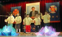 学龄前的小学员们表演拍手歌小学员表演法轮功五套功法小学员二胡表演