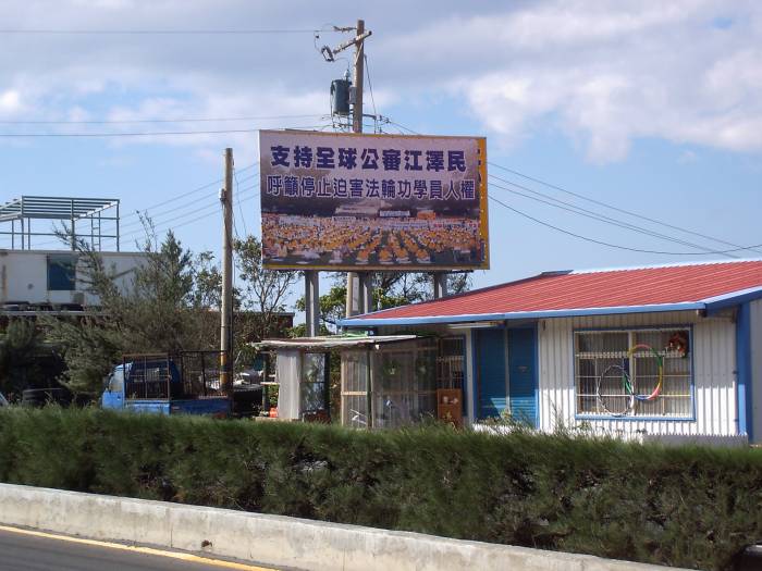 【明慧网2003年12月30日】这是台湾前往垦丁观光景点大法洪传与审江的看板,每天都有很多中国游客。
