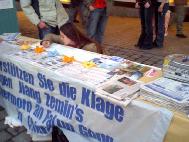 12月8日是熊伟的生日,我们在卡姆市的大型购物超市前厅里遥祝熊伟生日快乐,并向顾客发放法轮功真象报纸和营救熊伟的明信片。