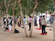 【明慧网2003年12月7日讯】星期日上午九点,在澳大利亚悉尼达令港的小树林里,当地法轮功学员的大型炼功、祥和的炼功音乐吸引了不少过往行人和游客驻足观看,有些还立即学习动作参加炼功。