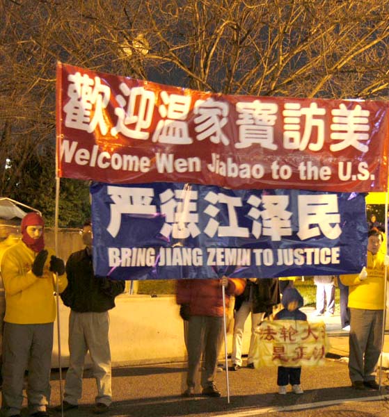这次活动的组织者说,四年来,江泽民发起的迫害,给上亿法轮功学员和他们的家人带来精神上、生活上的巨大痛苦,但法轮功学员始终和平、理性地反对迫害,并利用一切机会让人们从认识真相中受益。此次欢迎活动,便是法轮功学员想藉这次温家宝访美之际,展示法轮功真相,传递民众呼声。