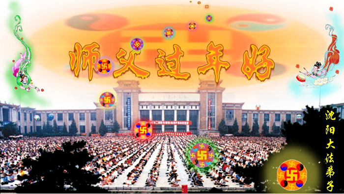 在此新春佳节之际,全体沈阳大法弟子向我们至尊至善的师父拜年:师父新年好!三年多来,众大法弟子坚强不屈的走过了风风雨雨,变得更加成熟与理智,事实已证明一切:无论艰难险阻都无法将大法弟子们与师父、大法相隔断!在新的一年里大法弟子们会一如既往的运用各种不同方式做好正法时期弟子们应该做的事,以创和师父团聚、普天同庆的美好时刻早日到来!