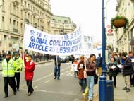 在新闻发布会之后,游行于下午1时开始,整个游行历时2小时。游行队伍从中国大使馆开始,中国城至唐宁街10号结束。在游行过程中,过往行人反应热烈。