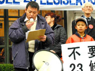 新闻发布会尾声时,两名反23条立法联盟成员向中国使馆递交公开信。在信中请愿者指出“江泽民集团不仅违反中英联合声明中对香港实行<一国两制>政策50年不变的承诺,使香港政治民主蜕变”,更“在国内也实行国家恐怖主义,残酷镇压善良百姓,清除异己”。