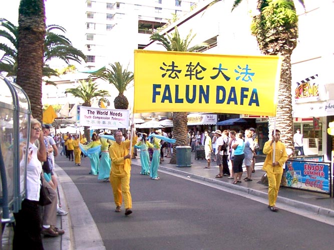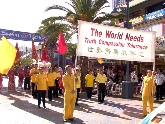 组织者对法轮功很了解,当即决定我们作为当地团体参加游行。而其它参加游行的团体都来自布里斯本市。组织者也对我们提出了一些表演和服饰上的具体要求。四名女学员演示古典唐装,四名表演舞蹈,四名男学员身穿黄色中式传统服装,外加八名男学员,上身穿黄色T恤衫,下身穿黑色长裤。法轮功参加当地政府赞助的游行活动,进一步体现出当地政府和人民对法轮功的支持。