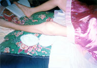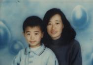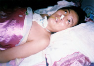 吴玲霞被佳木斯市西格木劳教所等迫害致肝硬化腹水,被送回家时的照片。吴玲霞被迫害前与儿子的合影。