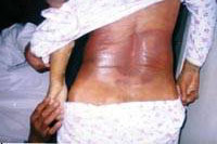 肖劲松 生前照片肖劲松先生被吉林市欢喜岭劳教所及九台饮马河劳教所酷刑导致昏迷状态,眼窝深陷,骨瘦如柴,肚子高凸,大腿根部粗肿吓人,最后被残害致死。