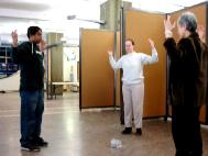 大法弟子说:“怎样才能身体好呢?”她说:“练太极拳嘛!”大法弟子说:“唉,年纪大了记不住,家里地方小,又划拉不开。”她说:“那就炼法轮功吧!我们单位里有好几个炼法轮功的,法轮功确实能健身。我看人家不就是炼炼功健身吗?哪谈得上反对政府了。有一个老阿姨是研究生,两个女儿,一个是研究生,一个是博士,为此事去上访,回来遭下岗。都是挺好的人。这不,过春节了,我给她们买了慰问品去看她们。”