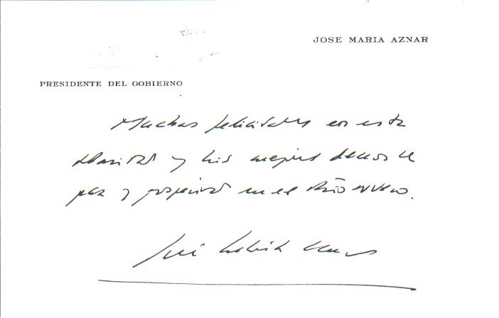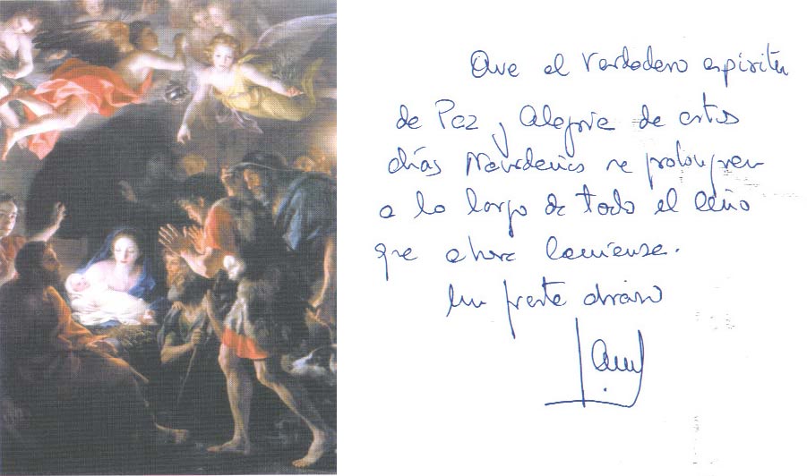 巴伦西亚市市长的贺卡“和平、希望与爱充满着我们的心田,在这圣诞的日子里和即将来临的2003年,我们坚信世界将会变得公正与美好。请接受我最美好的祝愿:圣诞快乐。”