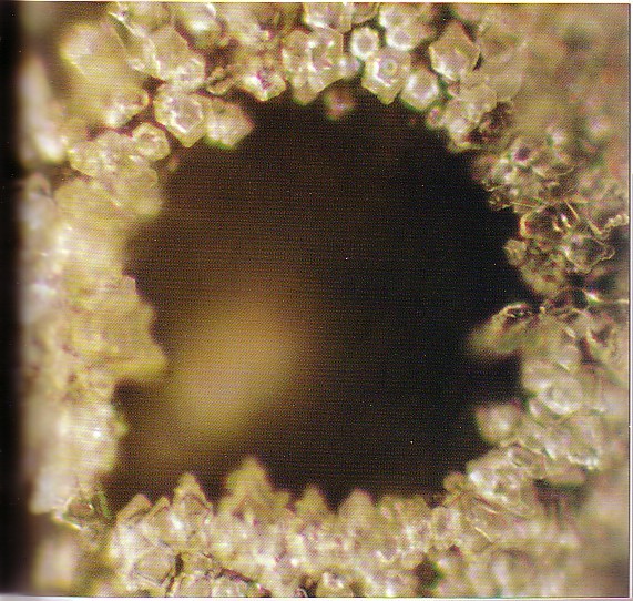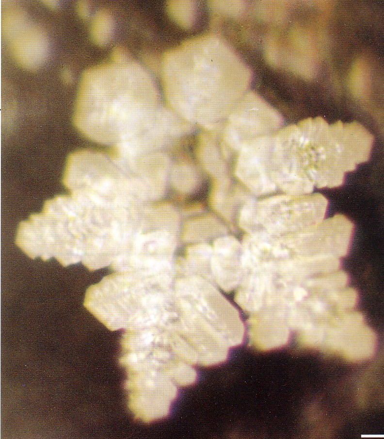 图3.广岛海拔500-700米高山的泉水的水结晶这是广岛海拔500-700米高山的泉水(图3)。这个结晶多象雪花。不需要地理知识,只需从水的结晶我们就能看出水的来源及所处的环境。