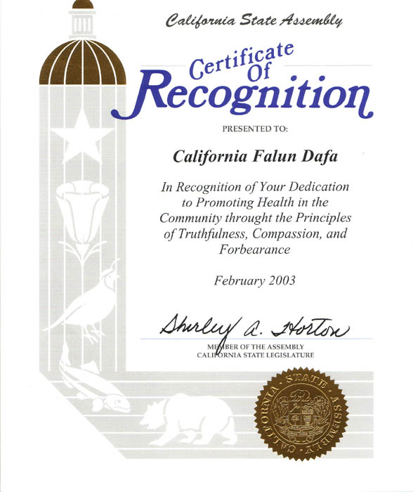 褒奖你们在“真善忍”法理的指导下致力于在社区内促进身体健康。