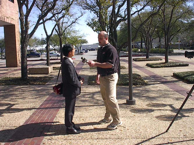 2月23日(星期日)下午3:00我们在考普斯克雷斯(Corpus Christi)市政府大楼前举行新闻发布会。由于我们开始通知媒体说是2:00,后来改为3:00,但有两家媒体还是2:00就来了,好在我们提前了一个多小时到了,所以还是安排得很好。记者详细询问,学员耐心回答,第一批记者花了近一小时采访完毕刚刚满意地离开,第二批两家电视台在3:00又来了,于是学员们又有充分的时间给第二批记者讲真相,直到他们满意地离开。最后走的一位记者说:“考普斯克雷斯的媒体今天全来了。”