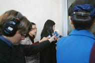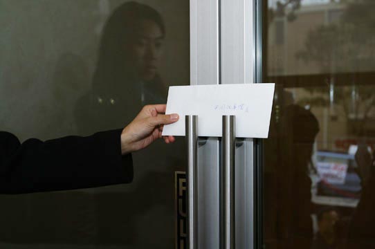 昨天,旧金山警察局的官员已经打电话给中领馆,告知今天法轮功学员将递交请愿信。但今天中领馆对法轮功学员的请愿活动显得无动于衷,态度相当的冷漠,在中领馆人员不开门,不让进,也不允许任何人出来接信的情况下,符泳青女士对着中领馆的大门大声的宣读了她的请愿信。