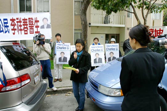 【明慧网2003年2月27日】北加州“李祥春之友”组织于2月26日中午11时在旧金山中国领事馆门前举行新闻发布会,强烈呼吁中国政府立即释放被非法关押的美国法轮功学员李祥春。1月22日在中国广州机场被无理扣押的美国公民李祥春的未婚妻符泳青女士向中领馆递交请愿信并接受了记者采访。