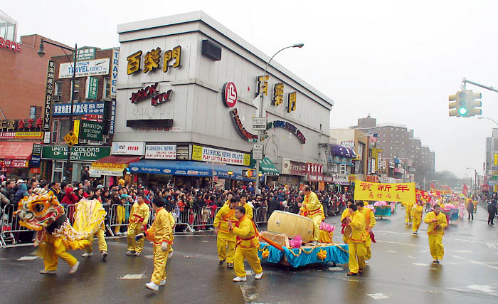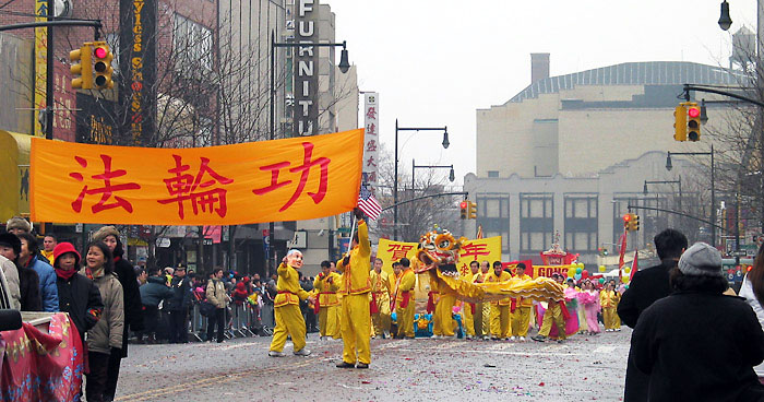 图片报导:纽约法轮功学员参加华埠法拉盛新年游行