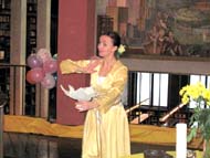 【明慧网2003年2月3日】2003年2月1日,正值正月初一,是为期六周的法轮功图片展在挪威奥斯陆最大的图书馆的最后一天。该图书馆与挪威大法弟子联合举办了一场中国传统文化日。瑞典与挪威大法弟子一起为观众们献上了一台精彩的文艺演出。大法弟子真诚、美好的表演给观众留下了深刻的印象。当一位学员自己作词作曲并亲自演唱歌曲“回家路”--献给中国大陆遭受迫害的大法学员的歌时,有的观众流下了眼泪。