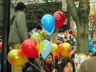 印有中法文“法轮大法好”和“真善忍”的彩色气球无处不在