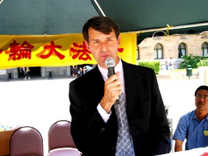 市政府议员格兰姆.奎克说他很高兴有此机会表明他对法轮功学员的支持。他热情地祝贺法轮功学员对信仰的坚定信念及他们严守真、善、忍原则的高尚行为。