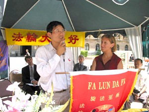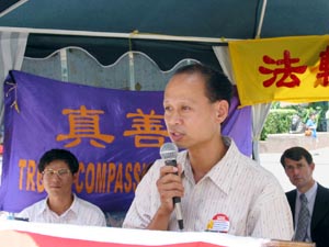 昆省法轮功协会发言人也发表了讲话,介绍了三年多法轮功学员在中国大陆遭受的残酷迫害,并呼吁澳洲政府和人民与世界人民一道伸张正义,协助制止这场对无辜善良民众的迫害。