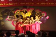 随着女高音唱出“跨越千山万水,我一次又一次为你而来,我因为爱你而来。可贵的中国人啊,请静心倾听我的心声,法轮大法好啊,法轮大法好!切莫相信那欺世谎言”,歌声在大厅中回响,莲花艺术团表演了欢快活泼的中国民间舞蹈扇子舞。