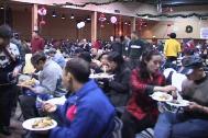 学员们与请来的朋友一面吃一面聊,无论是相识的还是互不相识的,大家谈得很投机。有位朋友感叹说:“看来法轮功一个个都挺能干的,长得也不错,还有好多还挺年轻的呢!”另一位朋友点头赞同:“早就听说了法轮功修炼人,但今晚是第一次看到他们的风貌!”