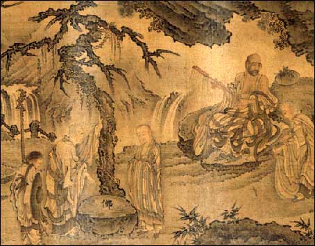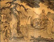 华夏丹青艺术发源于中国古老的半神文化,其艺术风格与精神内涵深深影响着世界文化艺术。不论是早期的以神灵劝诫为题材的绘画作品,还是后来的以人物、山水、花鸟为题材的作品,都展现了中国古老传统绘画的深奥内涵及当时各朝各代的社会文化。中国古人创作艺术的灵感都来源于内心的平静与内在的精神修炼。在中国古代社会,各行各业都讲究调息、运气,李洪志先生在《转法轮》中这样讲到:“那个时候上学的人,都要讲究打坐,坐着要讲姿式的,拿起笔要讲运气呼吸的,各行各业都讲净心、调息,整个社会都处在这么一种状态。” 其实,中国历代国画大师都是以修心养性为主,待人接物总是把他人放在第一位,创作出的作品不仅可陶冶人的情操,还可引导人们向善,告诉人们要拥有一个慈悲、祥和的心境。这样看来,把中国传统绘画艺术与修炼结合起来是再恰当不过了《转法轮》中这样写道:“真正修炼得修炼你这颗心,叫修心性。”艺术家们放淡各种欲望,才能真正拥有豁达祥和的胸怀,艺术境界才能升华上来。如果后人能领悟到真正的艺术应与修炼结合的重要性,就真正能体悟到艺术的真谛及生命的价值所在。