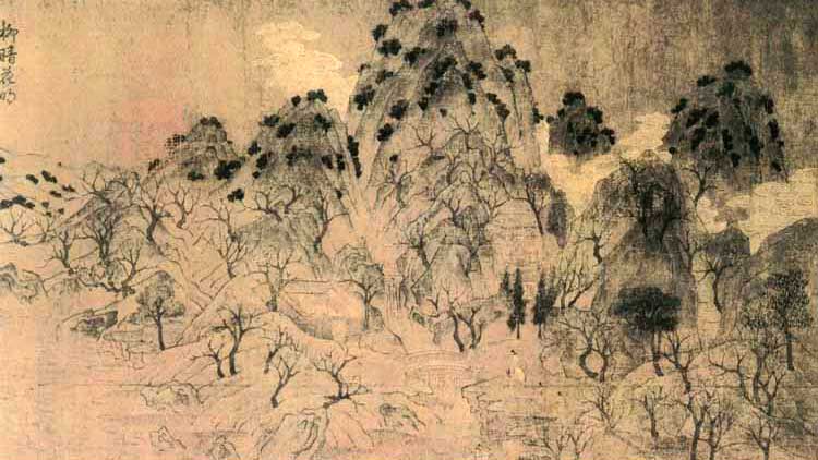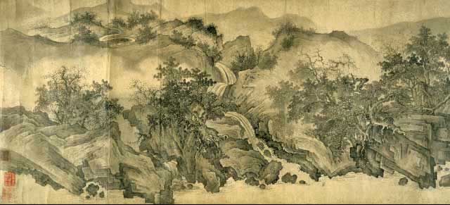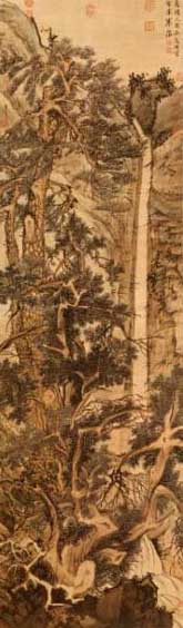 | 《双松图》(吴镇) | 《古木寒泉》(明 文徵明) |