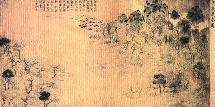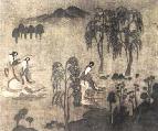 | (隋 展子虔 绢本 设色 纵43厘米 横80.5厘米) | |