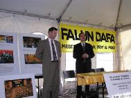 | 议员、记者在正法之路图片展上索取资料、与学员交谈 | 群众参观正法之路图片展 | 正法之路图片展在西人弟子的吉他演奏声中结束 |
