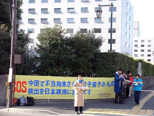 日本弟子在国会前呼吁营救金子容子(图)