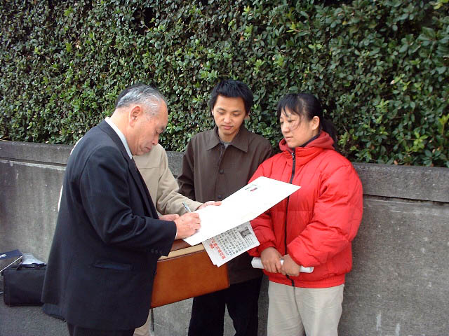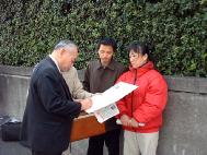 【明慧网2003年3月12日】3月10日起,日本大法弟子再次在日本国会前请愿,呼吁日本政府及整个日本社会帮助营救金子容子。许多弟子先后来到这里,发报纸,征签名,讲述真相,而几位年纪大的弟子更是一大早就到位,挂好横幅,并一直坚持到傍晚结束。