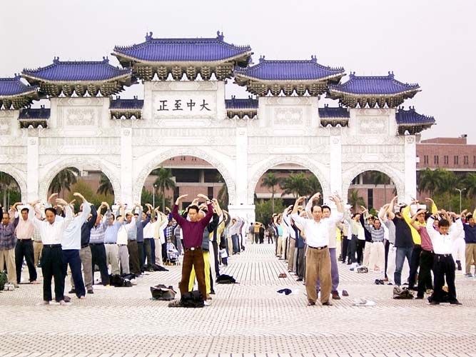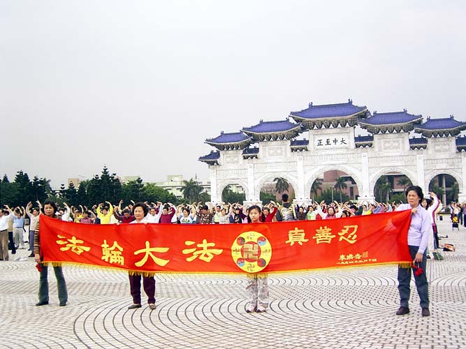 【明慧网2003年3月17日】台湾大法学员2003年3月15日下午2:00-5:00在中正纪念堂炼功洪法。当炼功音乐响起时,四周的人也停下来静静的看,也有跟着学的,就在这祥和的环境下度过了一个美好的周末。