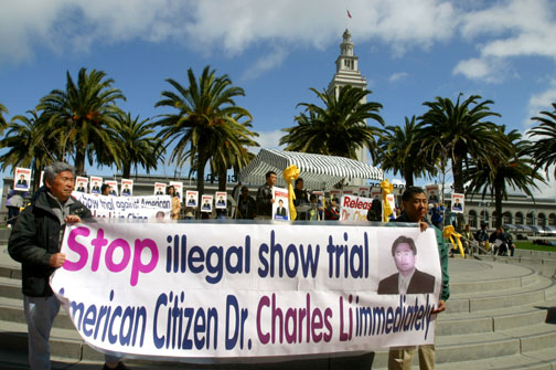 【明慧网2003年3月17日】三月十六日中午12时,北加州“李祥春之友”在旧金山海边的查斯廷.荷曼(Justin Herman)广场举行公众集会,题目为:让李祥春回家!不能容忍美国公民成为中国审判表演的牺牲品。呼吁美国民众营救李祥春。