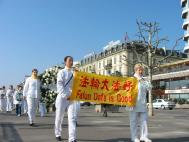 为表示对法轮功学员的支持,来自瑞士联邦议会的议员兼绿党主席帕特黑司.穆尼先生,瑞士联邦议会议员尼尔.德.达尔戴克先生,日内瓦市议会议员玛丽亚.保罗.布朗沙库兹夫人,以及法国绿党亚洲委员会主席让-马克.布鲁莱先生亲自参加了法轮功学员的游行活动。