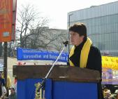 “在这混乱时期,也就是与真、善、忍对立的谎言,仇恨和不容忍正在猖獗之时,我们法轮功修炼者在联合国人权委员会会议开幕的这一具有象征意义的一天。用我们的诚心和行动发出呼吁:请倾听成千上万无辜的被迫害的法轮功学员的心声,使得在中国和其他国家的信仰自由和基本权力能够得到重视。”