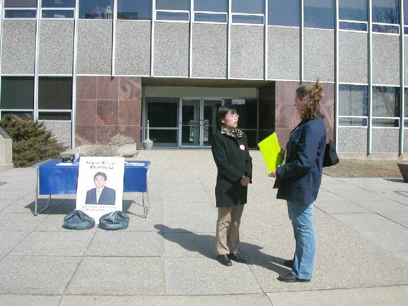 这次活动中,我们也遇到不少干扰。在准备材料时,计算机出问题,写好的文件丢了,传真发不出去,时间不够等等。在活动中,遇到大风,影响放横幅和展板。这些干扰正说明邪恶是非常害怕我们要做的,我们发正念排除干扰,坚定地做我们应该做的。