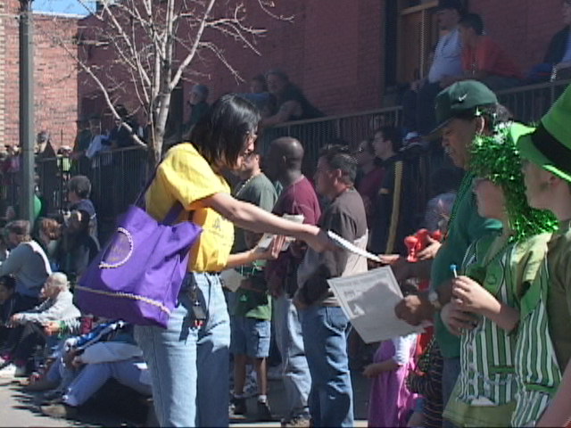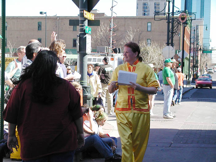 【明慧网2003年3月19日】三月十五日星期六,科罗拉多的大法弟子参加了一年一度的圣帕特里克日(St. Patrick)大游行。今年的游行规模很大,大约共有将近三百个组织和团体参加了这次大游行,约有三十万多人观看了游行表演。