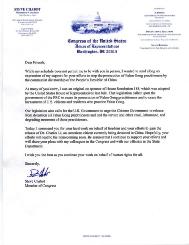 美国俄亥俄州第1选区国会议员史蒂夫.查博特给法轮功学员的回信