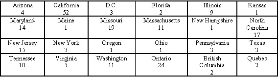 有21人未注明其所在的州/省。上表显示了从各州收到的调查表的数目。