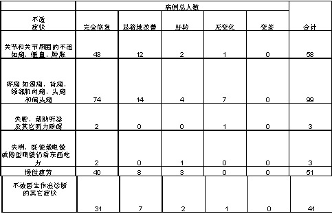 B.5. 修炼前后不适症状的状况。表四总结了修炼前后不被医生下诊断的不适症状的改善情况。从表中可以看出这些症状都得到了明显的改善。