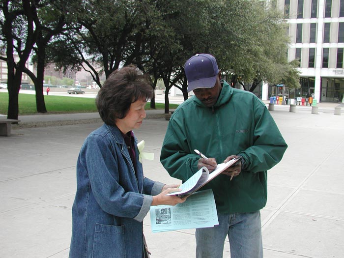 中国政府无理扣押美国公民的行径,已引起了美国人民、政府官员及议员们的强烈反感。一位学员当众宣读了两名国会议员就即将进行的“审判”闹剧的信,在信中他们表达了对此事的深切的关注,请大使先生尽一切努力帮助此事。接着,另一位法轮功学员也向人们讲述了他的同学、朋友、一位才华横溢的学子在因修炼法轮功在中国大陆遭受迫害的事实。