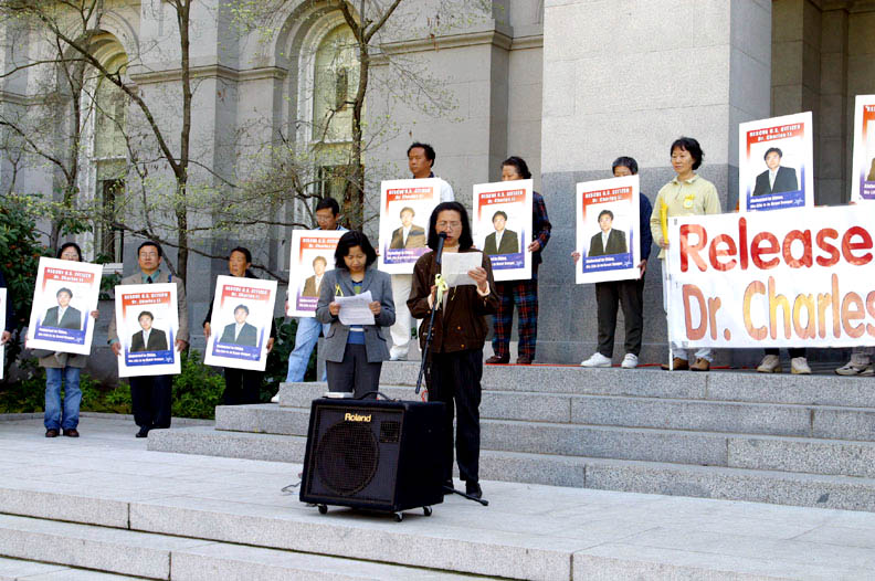 【明慧网2003年3月22日】在江氏集团对无辜的大法学员李祥春(查尔斯·李)进行所谓的审判之时,北加州法轮功学员连续两天分别在旧金山中领馆和加州首府沙加缅度集会,谴责荒唐可笑的“作秀审判”闹剧。